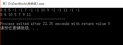 1 #include<iostream> 2 #include<deque> 3 using namespace std; 4 5 typedef struct BiTreeNode{ 6 int data; 7 struct BiTreeNode *left; 8 struct BiTreeNode *right; 9 }BiTreeNode; 10 11 void Print(BiTreeNode *pHead){ 12 if(pHead == NULL){ 13 return; 14 } 15 16 deque<BiTreeNode *> node; 17 node.push_back(pHead); 18 19 while(node.size()){ 20 BiTreeNode *pNode = node.front(); 21 node.pop_front(); 22 23 cout<<pNode->data<<' '; 24 25 if(pNode->left){ 26 node.push_back(pNode->left); 27 } 28 if(pNode->right){ 29 node.push_back(pNode->right); 30 } 31 } 32 } 33 34 //创建二叉树,使用前序创建二叉树,遇到-1表示节点为空 35 BiTreeNode* createTree() 36 { 37 int item; 38 BiTreeNode *t ; 39 cin>>item; 40 41 if(item != -1) 42 { 43 BiTreeNode *pTmpNode = new BiTreeNode(); 44 45 t = pTmpNode; 46 pTmpNode->data = item; 47 48 t->left = createTree(); 49 t->right = createTree(); 50 return t; 51 } 52 else 53 { 54 t = NULL; 55 return t; 56 } 57 } 58 59 int main(){ 60 BiTreeNode *p = createTree(); 61 Print(p); 62 return 0; 63 }