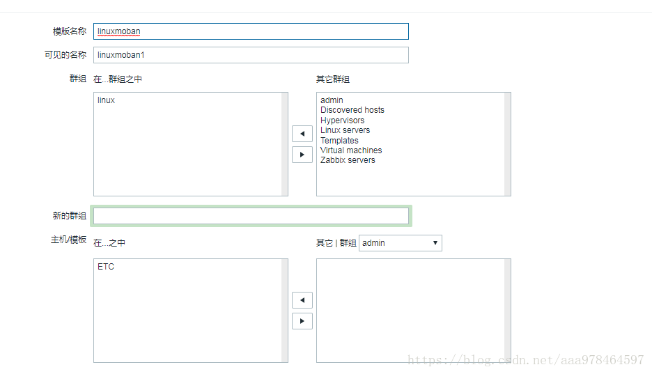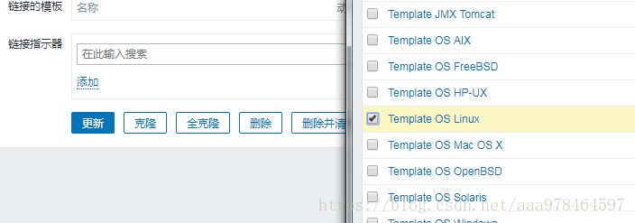 2.在上图界面按----链接的模板为template OS linux---记得选添加