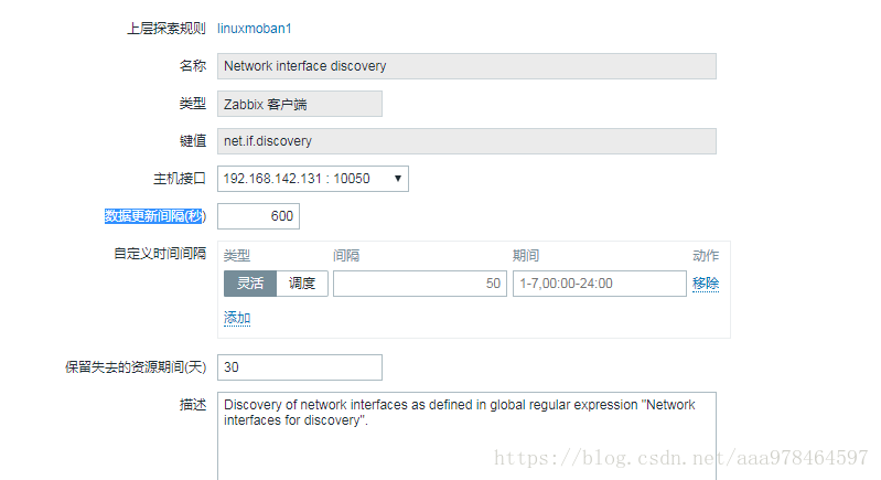 1.点击主机配置----自动发现---设置Network interface discovery---数据更新间隔(秒改为60秒