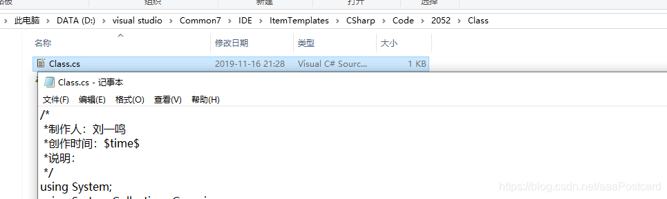 方法:找到相关路径(路径如下图),用记事本打开Class.cs即可进行修改: