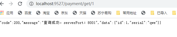 当使用GateWay的时候,将端口号改为GateWay的端口号 (9527),则也可以查询出8001中的信息。