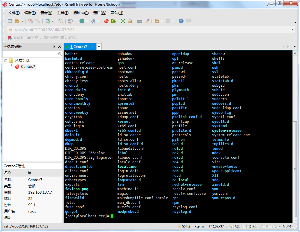 Xshell 6 连接 虚拟机Centos7