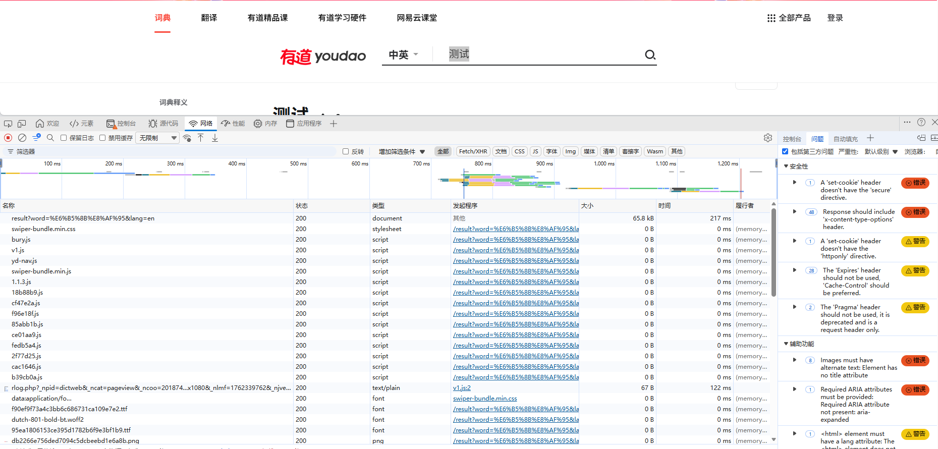 再点击搜索框,输入我们刚刚翻译的字,以“测试”为例,找到存放翻译内容的请求