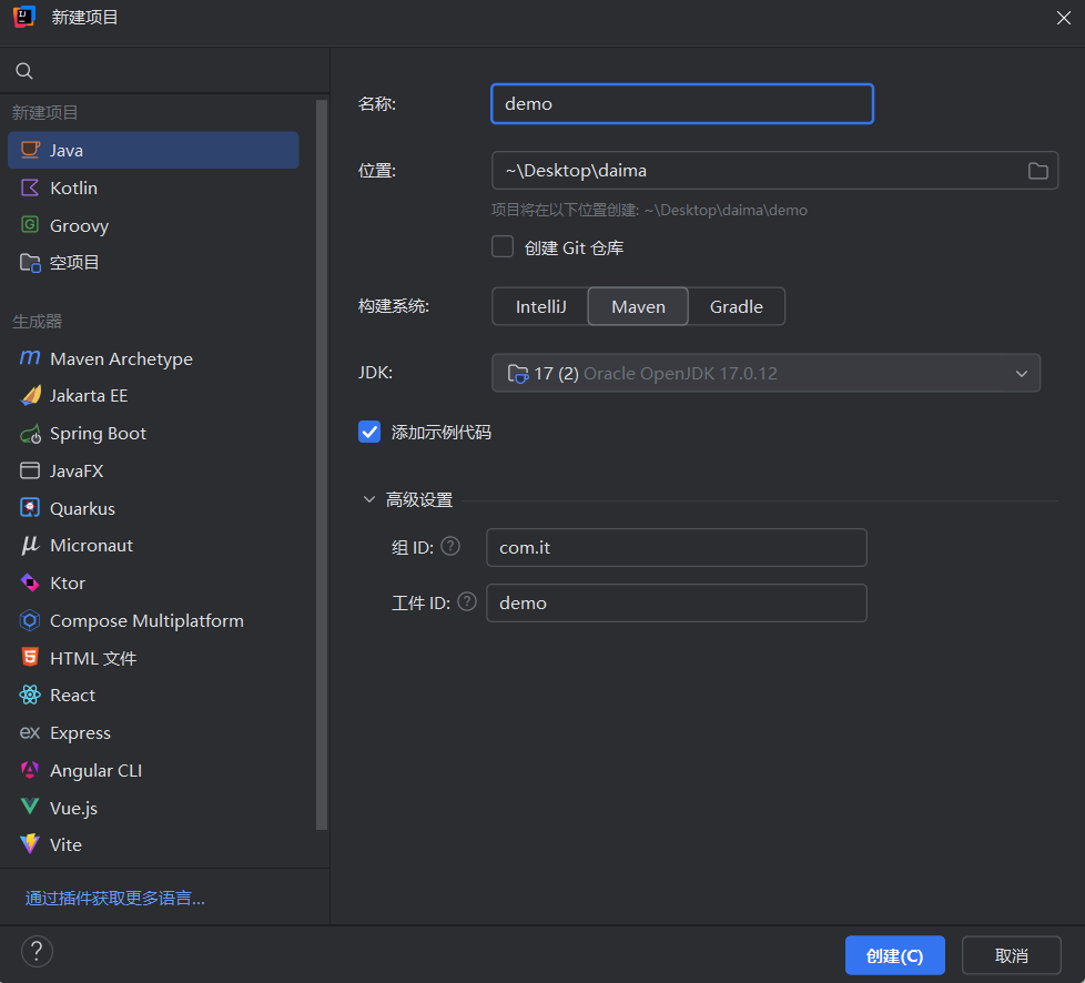 项目/ ├── src/ │ ├── main/ │ │ ├── java/ │ │ │ └── com.it.example/ │ │ │ ├── config # 配置类 │ │ │ ├── controller # 控制器层 │ │ │ ├── service # 服务层 │ │ │ ├── mapper # DAO 层 │ │ │ ├── entity # 实体层 │ │ │ ├── dto # 数据传输对象 │ │ │ ├── utils # 工具层 │ │ │ ├── exception # 异常处理 │ │ │ ├── interceptor # 拦截器 │ │ │ └── Application.java # springboot 启动类 │ │ └── resources/ │ │ ├── mapper # MyBatis XML 映射文件 │ │ ├── static # 静态资源 │ │ ├── templates # 模板文件 │ │ └── application.yml # 主配置文件 │ └── test/ │ └── com.it.demo/ │ └── DemoapplicationTests # 测试类 └── pom.xml # 核心配置文件