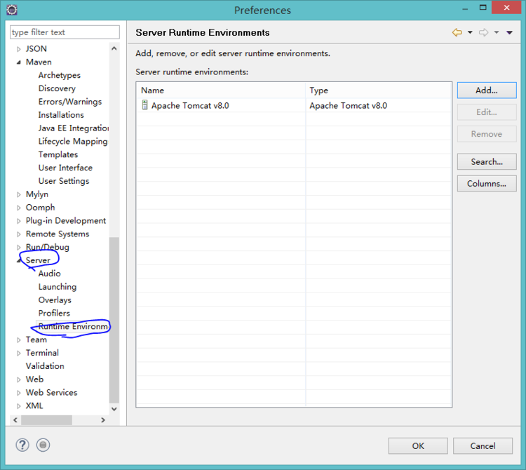 Server:Add时,选择v8.0,然后brower地址,记得JRE处也要换jdk为安装的