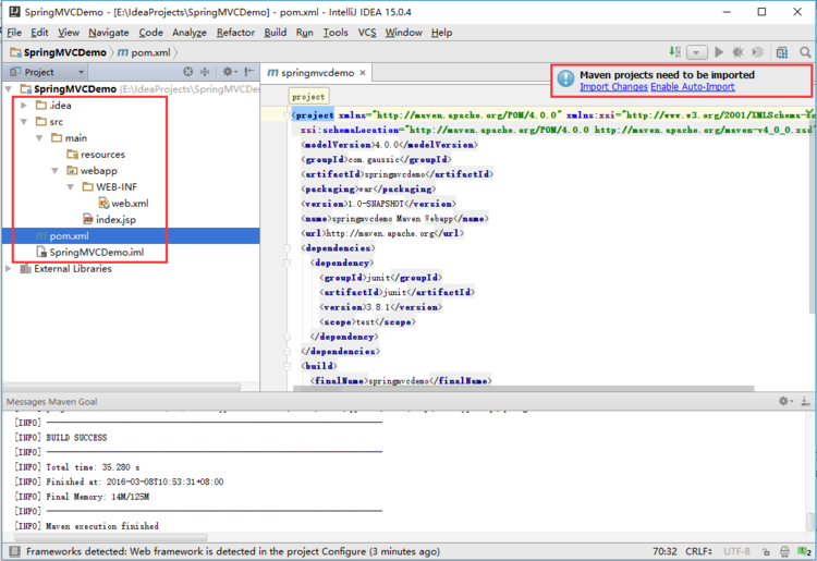 <build> <finalName>springmvcdemo</finalName> <plugins> <plugin> <groupId>org.apache.maven.plugins</groupId> <artifactId>maven-compiler-plugin</artifactId> <configuration> <source>1.8</source> <target>1.8</target> </configuration> </plugin> </plugins> </build>
