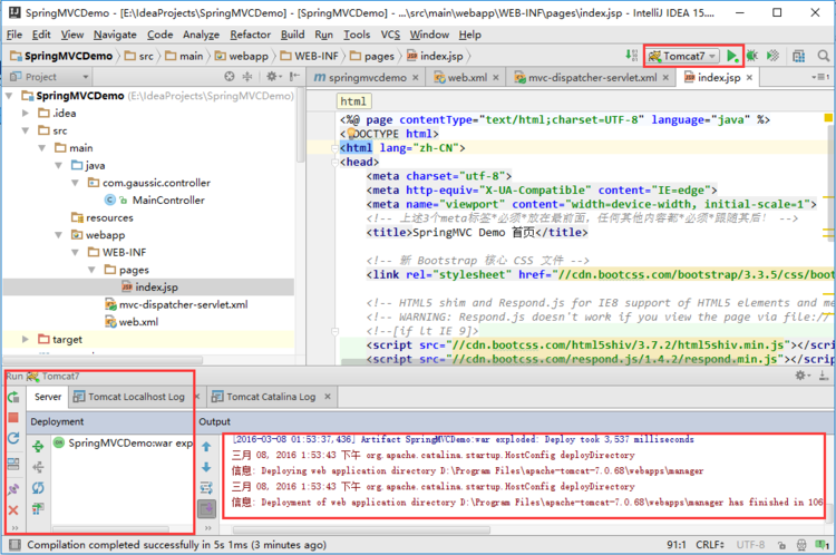 这里使用了Bootstrap的CDN加速服务,如果要使用本地的Bootstrap,请前往Bootstrap官网下载,并放在 webapp 目录下,然后引入到 index.jsp 中。