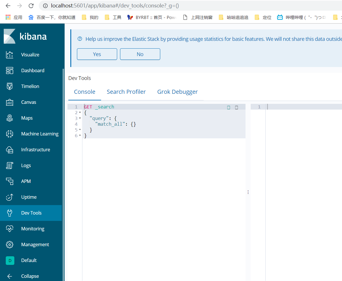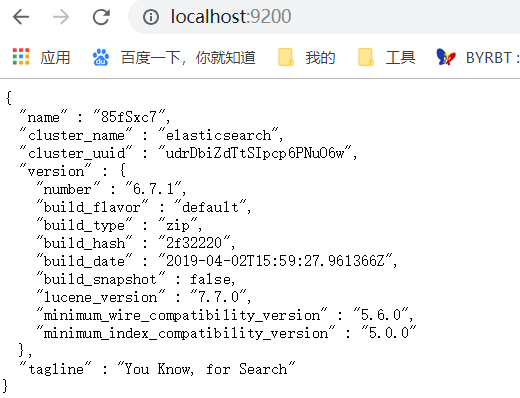 4.栏中输入如下路径:localhost:9200,出现以下画面说明启动成功