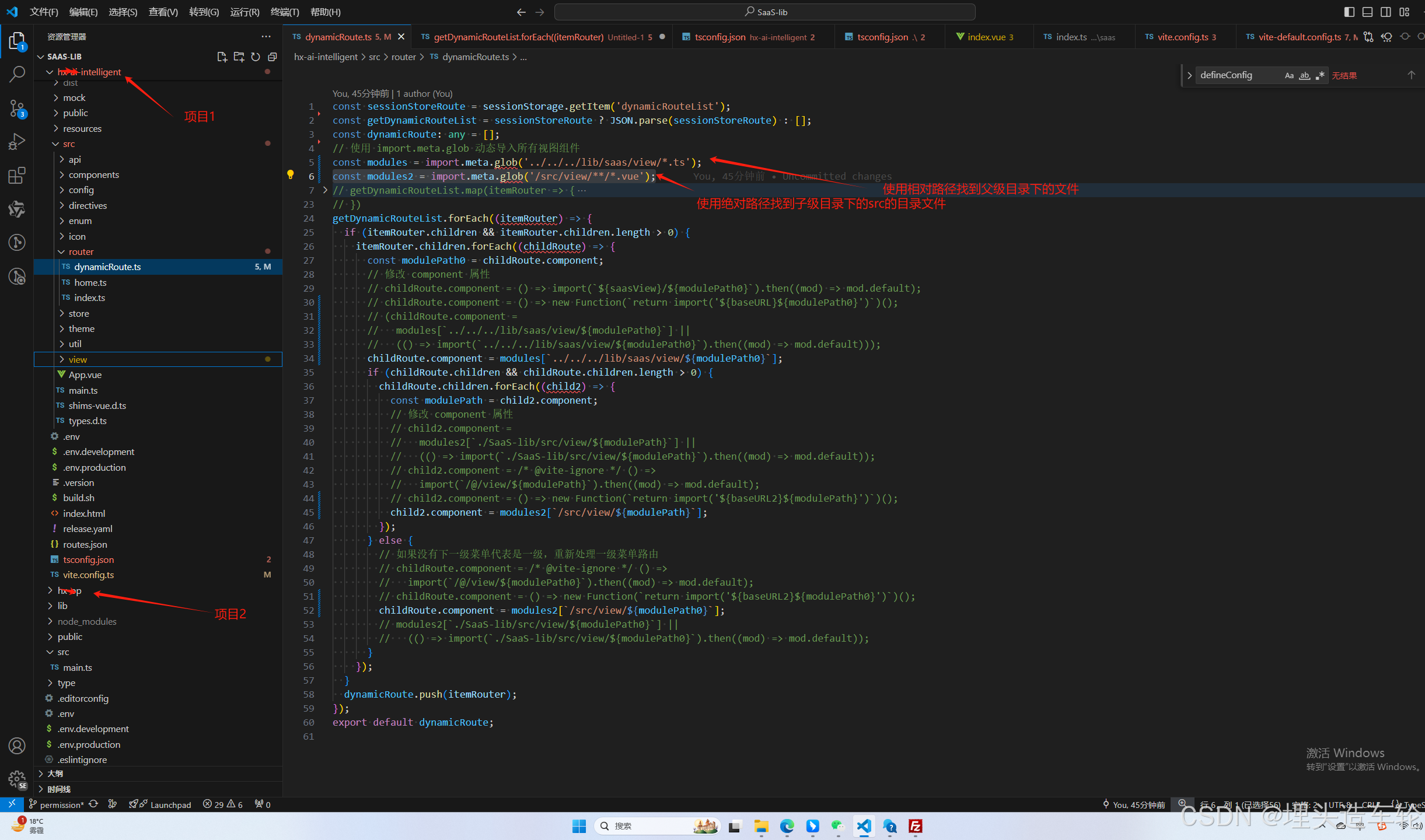 前言:当前项目包含了2个子项目,自己vite.config.ts与父级vite.config.ts有关联关系,声明别名时会导致整个项目报错,直接逻辑导入路径前缀会导致打包线上时找不到路由前面的路径,故而使用动态导入路径方式来处理。