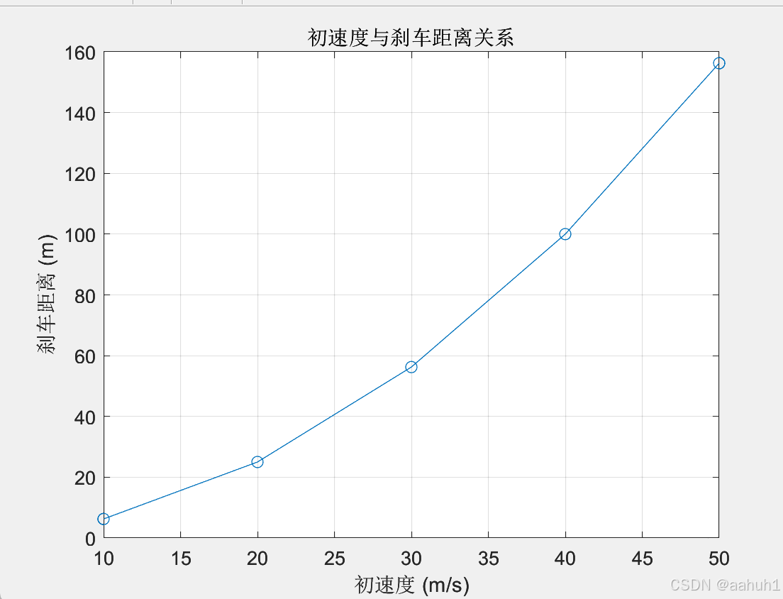 - 使用物理公式计算每个初速度对应的刹车距离。