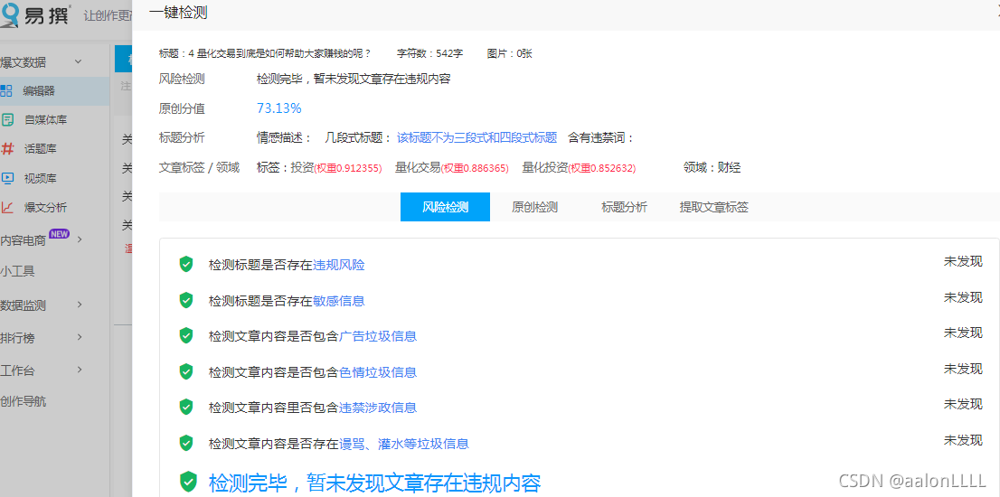 为什么如今的人都会比较注重量化交易,是因为在这背后拥有着很多的高收益,其中有一些可以年化205左右,这些我们只需要在网络上查询一下就可以看到,而在过去的一个月交易内也可以获得4%的回报率,所以当我们真的想要投资的时候,就一定要挑选一些比较合适的平台。因为平台和用户本身就是捆绑在一起的,只有用户赚钱平台才有机会赚钱,用户亏损平台一无所有,可能还需要倒贴,就是因为如此人们对于量化产品才会比较关注,又只要我们能够选择一个比较合适的方法,就能够拥有着较好的效果,可以轻松的帮助大家解决各类的问题。