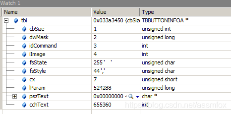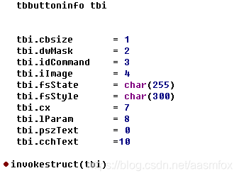 使用 TBBUTTONINFO 操作工具栏,使用用到byte类型的字段,