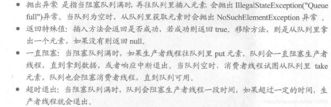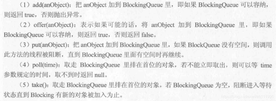 BlockingQueue常用的方法有以下几种。