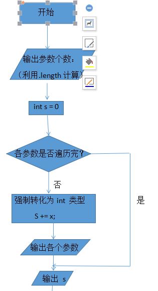 设计思想:首先在程序中设置关于参数个数的长度的公式,用.length公式读出用户所设置的参数的个数,参数默认为字符串类型,利用强制类型转化将其转化为整型,再对参数表里的数字进行加和,利用for循环实现对输入的所有数据转换,求和。