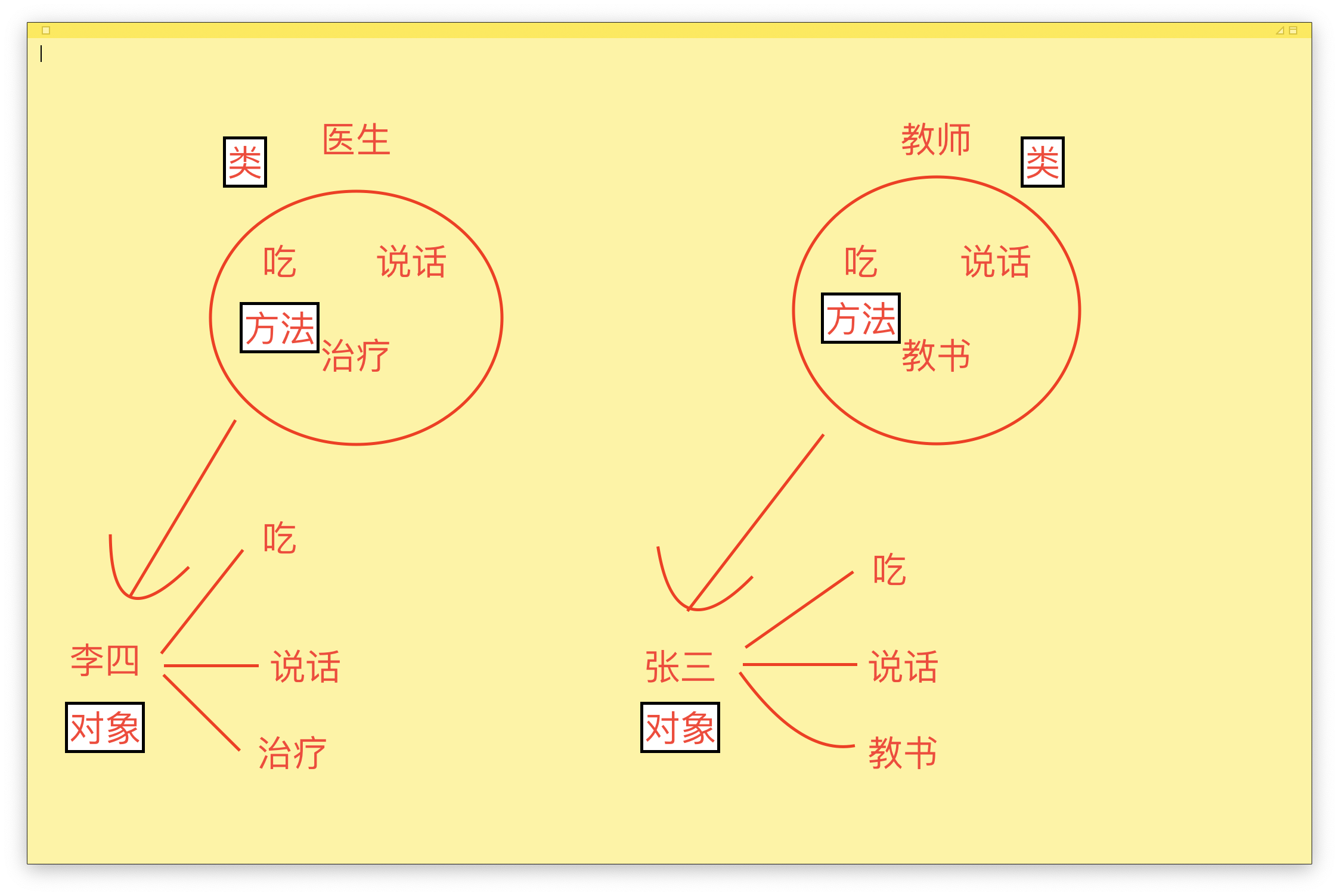 「解释」面向对象编程就是物以类聚,人以群分。有一个职业叫做医生(类),这是一个抽象的存在;李四(对象)是一个医生,这是一个具体而真实的存在;因为医生(类)可以吃饭、说话、治疗,不可以教书,那么张三(对象)就可以吃饭、说话、治疗,不可以教书。