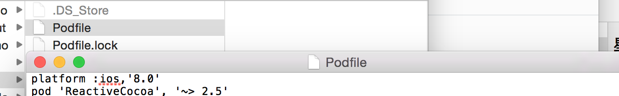 2.上面的步骤难免有些麻烦,所以用CocoaPods更为便捷一些,Profile文件中的内容如下所示,我用的是2.5版本。3.0后就支持Swift了,设置完Profile文件后,pod install即可。