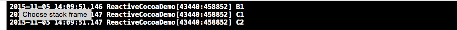 下方截图是上个这个方法中的运行结果,从运行结果不难看出,通过Signal相应的方法处理完后,处理的结果会与新返回的信号量所绑定。原信号量中的值保持不变。每次信号量调用相应的方法处理完数据后,都会返回一个新的信号量,而这个信号量是独立于原信号量的。