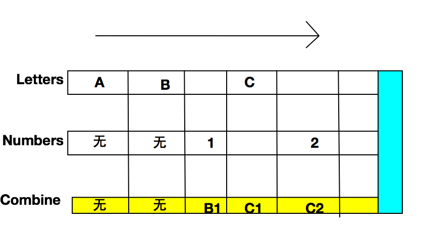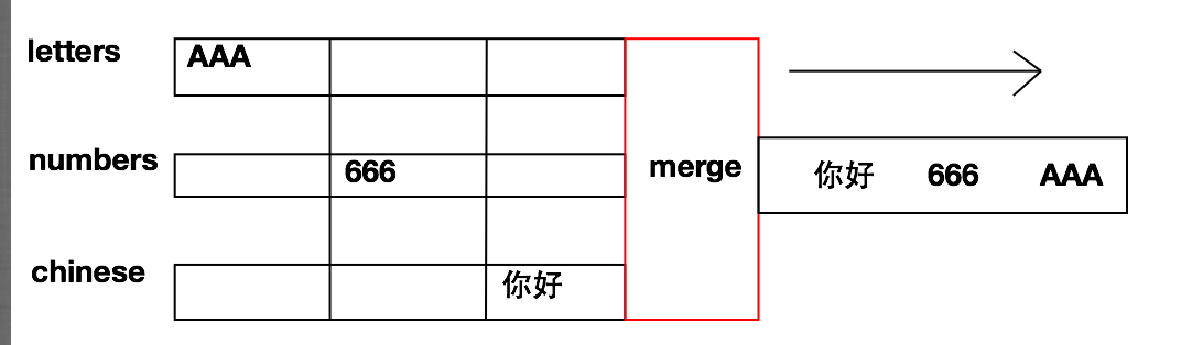 (3) reduce块中是合并规则:把numbers中的值拼接到letters信号量中的值后边。