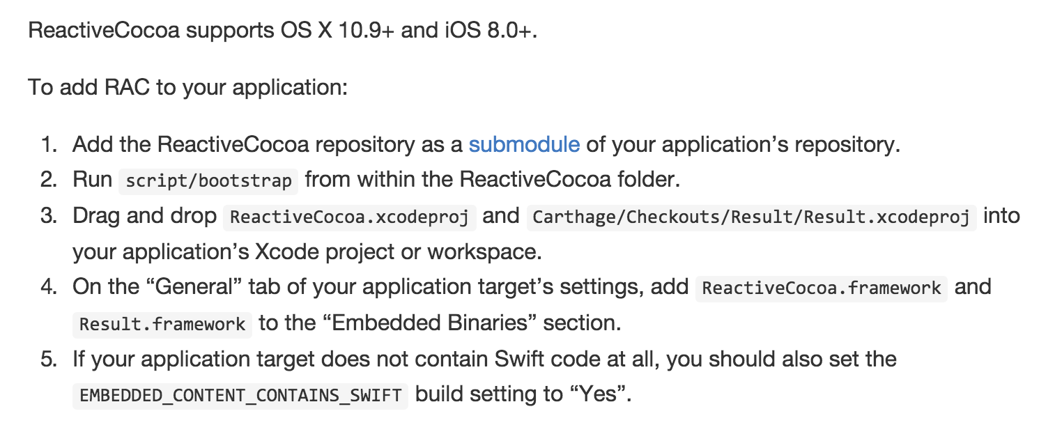 ReactiveCocoa中对Block的使用可谓是淋漓尽致,如果对Block使用不熟的朋友可以补一下Block的东西,然后在回头看一下ReactiveCocoa的东西。关于ReactiveCocoa更多的东西,请参考Github上的链接(https://github.com/ReactiveCocoa/ReactiveCocoa)。