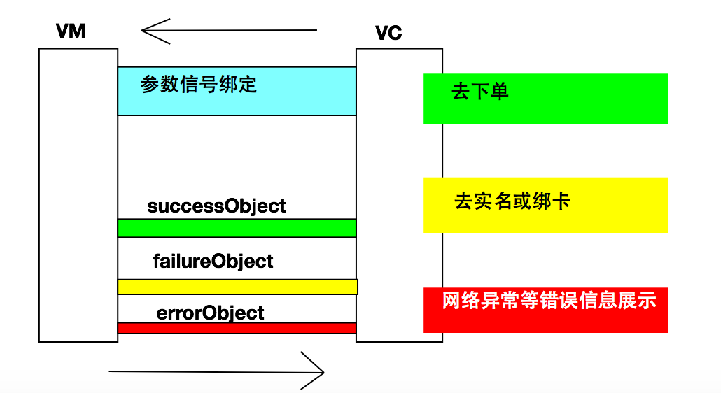 (1) 在VC中实例化相应的VM类,并绑定相应的参数和实现接收不同信号的方法,具体代码如下: