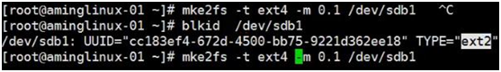 mke2fs -m 1 /dev/sdb1 指定预留空间,原始是5%