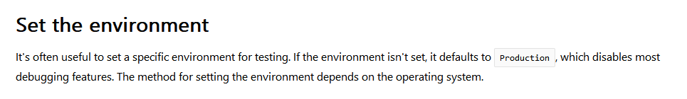 - 未设置环境变量ASPNETCORE_ENVIRONMENT,则默认为Production