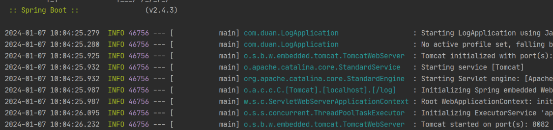 默认情况下,Spring Boot 会用Logback 来记录日志,并用 INFO 级别输出到控制台。