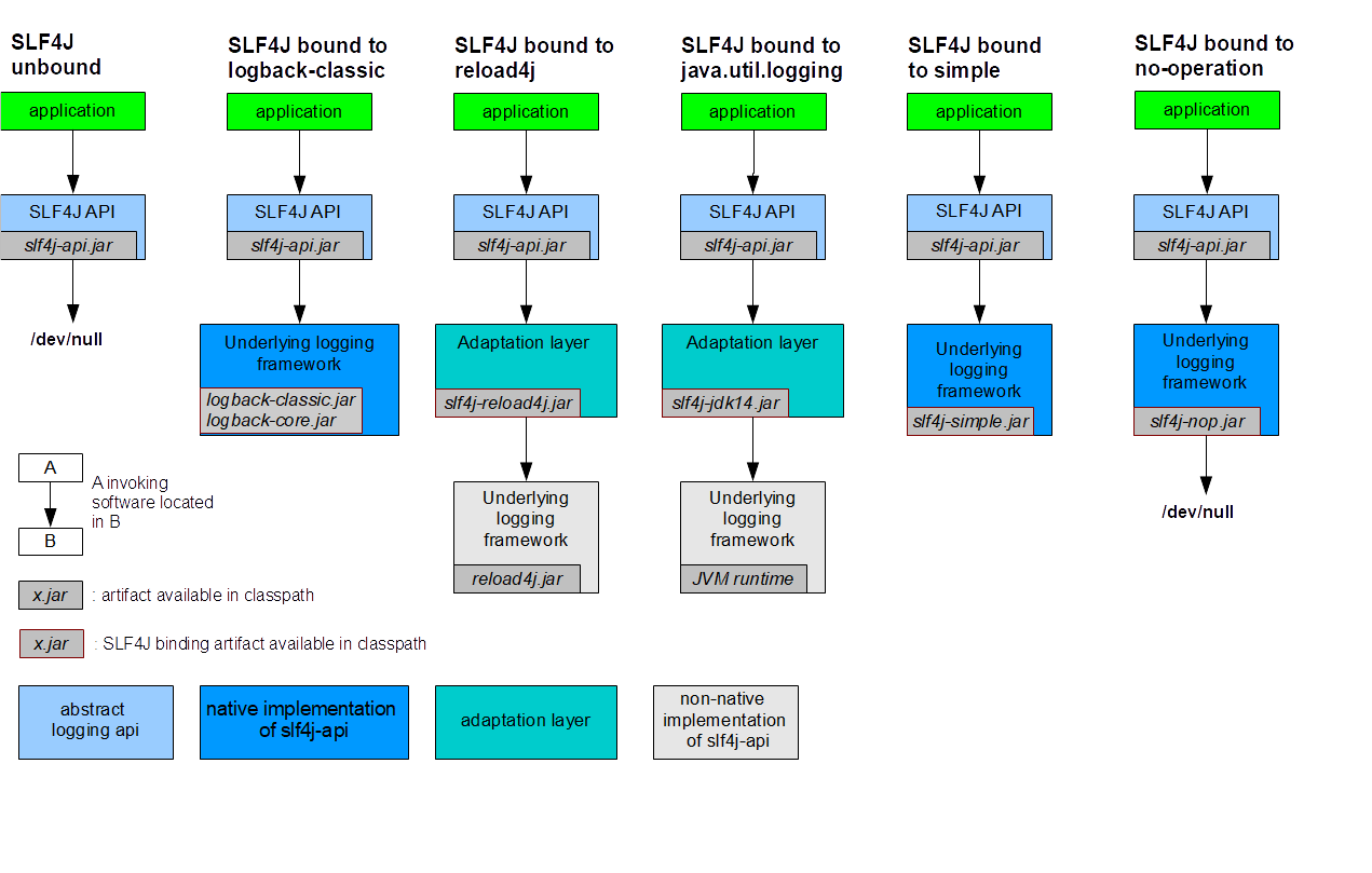 slf4j-reload4、JUL(slf4j-jdk14)没有遵循slf4j的API规范,所有无法直接使用,中间需要增加一个适配层(Adaptation layer),通过对应的适配器来适配具体的日志实现框架。