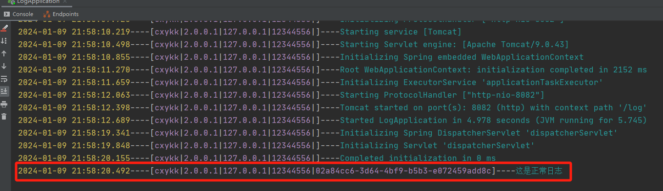 启动项目,通过 postman 调用 login 接口,查看结果输出日志格式。
