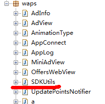 如下图waps/SDKUtils包含的api以及抓包的分析也可以可推断。