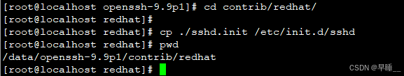 紧接着进入 contrib/redhat 文件夹 (位置是解压的openssh9.9文件夹里,具体看我截图的pwd)