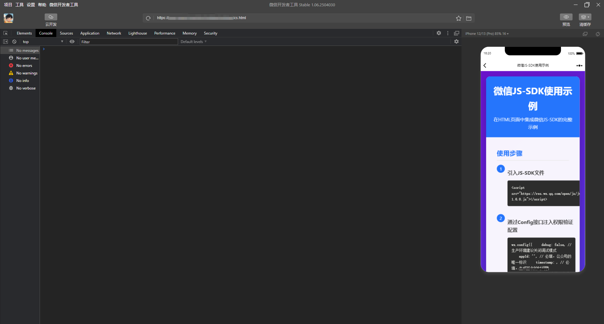 这边呢,现在JS-SDK就已经初始化好了,现在就要在微信环境中来校验签名了,切记这边这个操作一定要在微信环境中