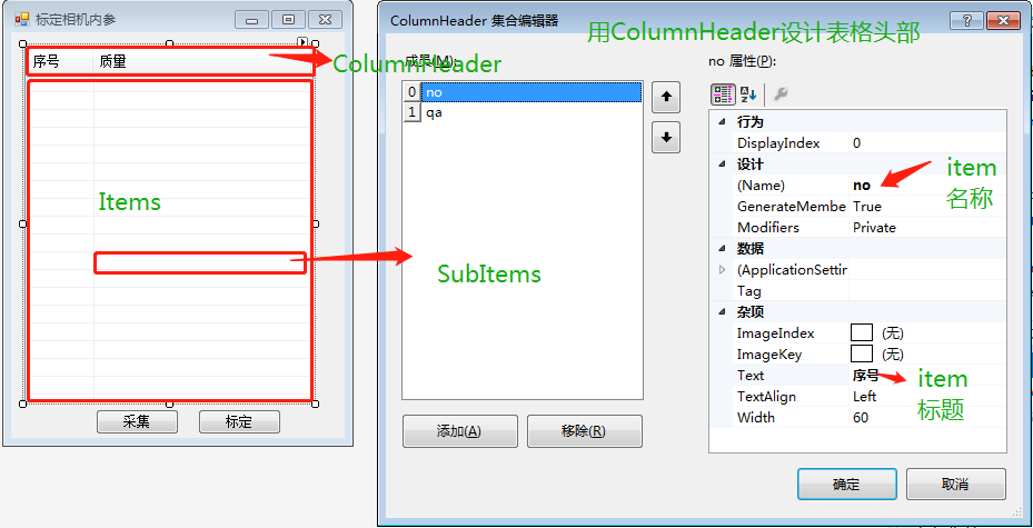 点击ListView属性框里的编辑列,可以设计列表头部: