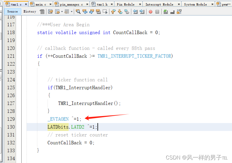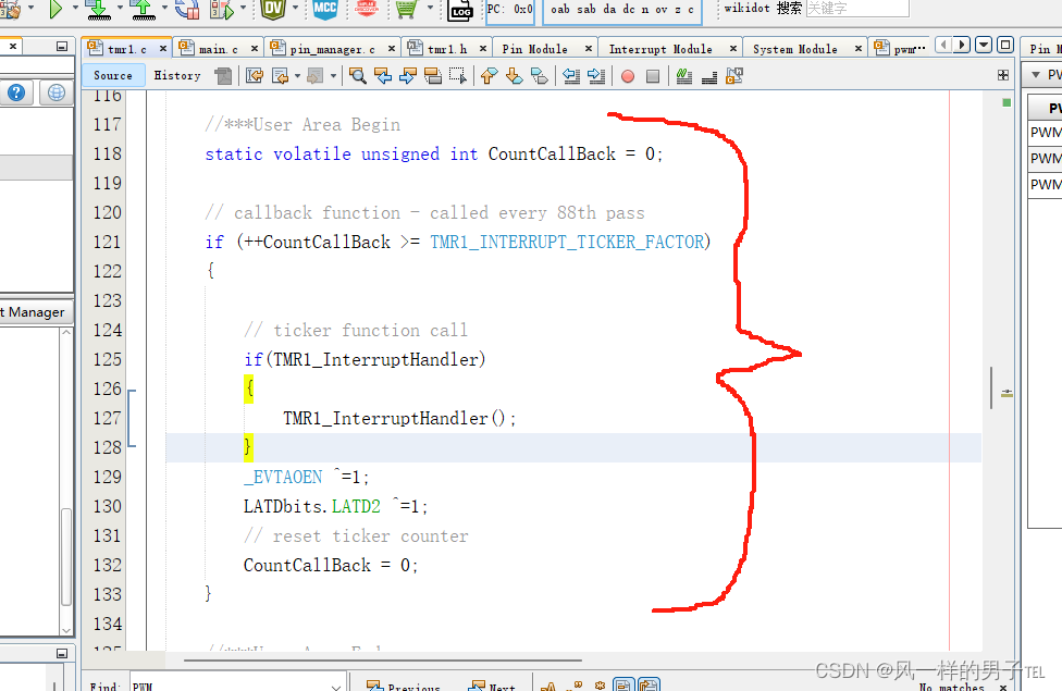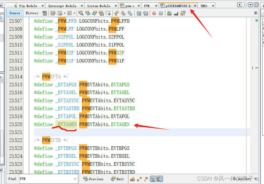 这段就是定时器中断函数。接下来找到输出2.7KHZ的PWM事件使能位。