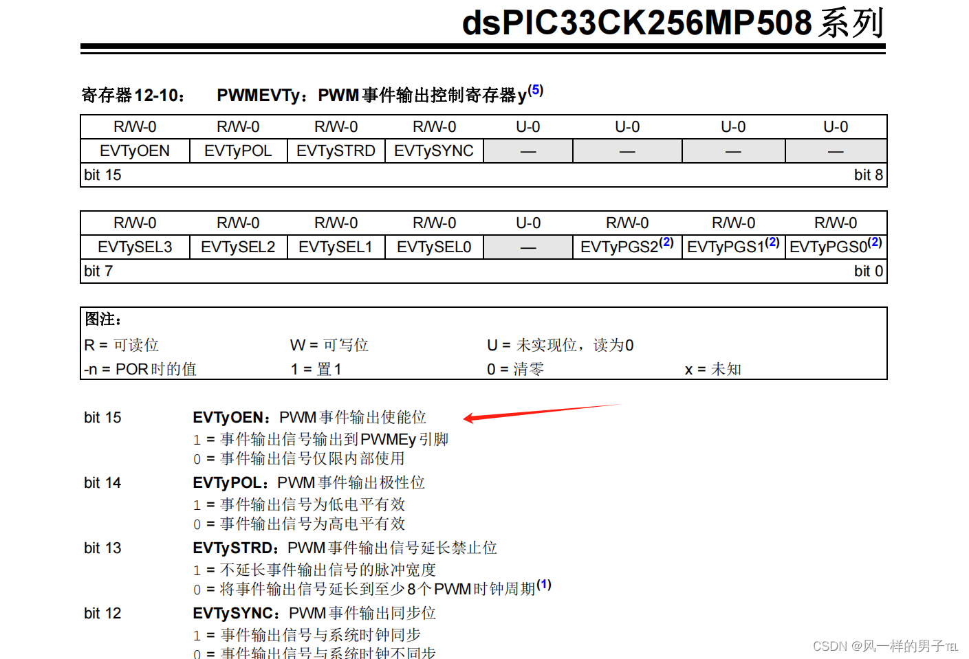 根据寄存器发现PWMEVTy事件输出寄存器的第15位用作使能/失能。
