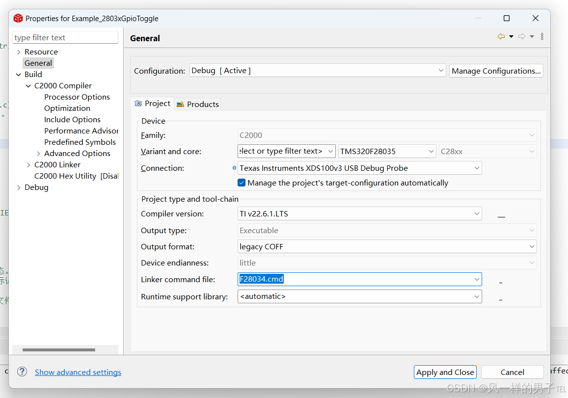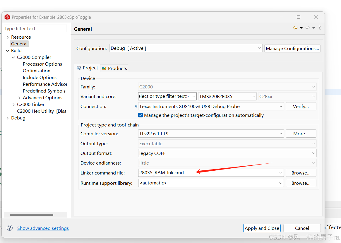 主要记录第一次使用这款DSP芯片觉得与普通MCU不同的地方,本人使用的xds100V3仿真器。之前开发其它MCU通过开发环境仿真一般都是会先把程序下载到MCU的FLASH中然后运行,断电后重新上电会自动执行。而这款芯片不同,当我将下载到的官方GPIO翻转例程编译成功并且连接好目标板进行仿真时一切正常。断电后发现程序却没有执行,后来了解到仿真时居然把程序放到了RAM中运行,所以断电后程序不会保存。当然,也可以将程序放到FLASH中,下面只是其中的一种方法。