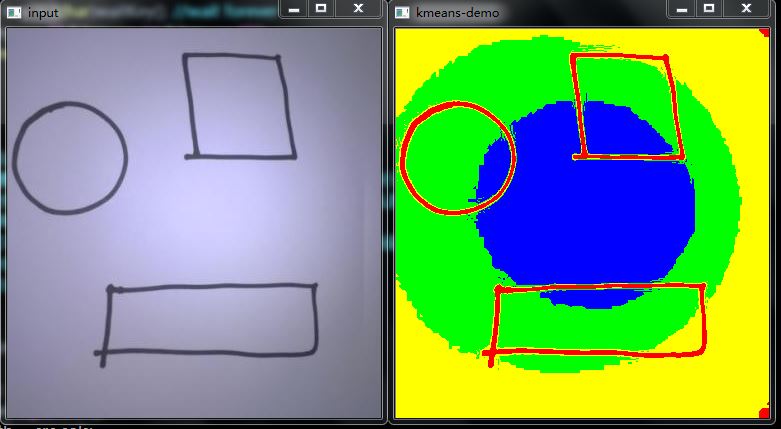 K均值聚类算法,在opencv中通过kmeans()函数实现;k均值通俗讲:就是从一堆样本中,随便挑出几个,比如3个吧,然后用样本中的和这挑出来的比较,比较后排序,谁和挑出的那个接近就把他划到那个类里,比如样A和挑1、挑2、挑3中,挑2最接近,则把样A划到挑2里,当然还没完事,还得再对挑完的3个类群,确定一个类群代表——“均值”,然后以这3个新的代表——“均值”再次与样本对比,直到“均值”不在变了,则迭代终止,聚类完成了;