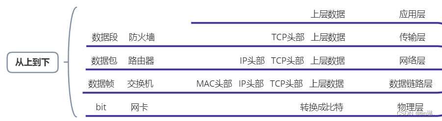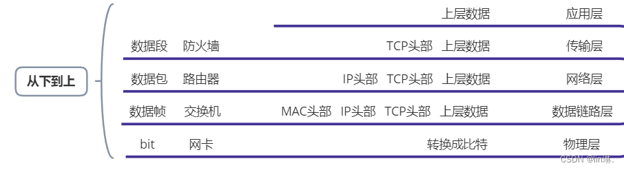 | 网络层 | 定义逻辑地址、实现不同网络之间的寻址,理论选择转发数据的最佳路径(根据ip地址 选择数据传输最佳路径 ) | 数据包packet | 路由器 |