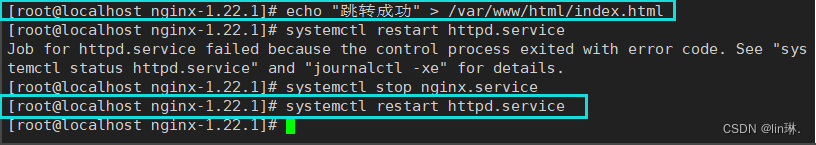 echo "跳转成功" > /var/www/html/index.html