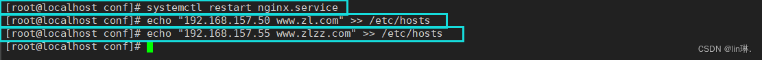 echo "192.168.157.50 www.zl.com" >> /etc/hosts