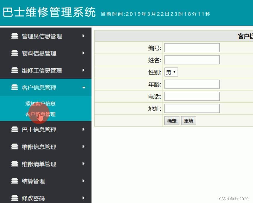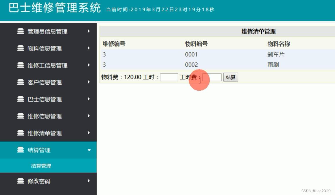 论文阐述了巴士维修管理系统的设计与实现,并对该系统的需求分析及系统需要实现的设计方法作了介绍。该系统的基本功能包括用户登录,管理员信息管理,物料信息管理,维修工信息管理,客户信息管理,巴士信息管理,维修信息管理,维修清单管理,结算管理,修改密码等功能。