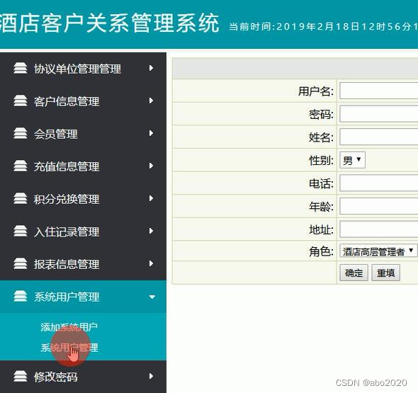 会员管理包括注册会员、会员信息管理、激活会员、统计报表功能。会员信息管理包括积分兑换、手工调整积分、修改资料、入住历史查询、换卡、加入黑名单、删除会员、激活会员卡、会员充值、修改密码、会员等级升级等功能。(大概就是客户消费达到一定数额,比如1000就可以选择激活会员,有了会员可以拥有本店个人信息账户,该账户可以充值,消费并获得积分,积分对应多少积分可兑换什么东西,可以简单做)
