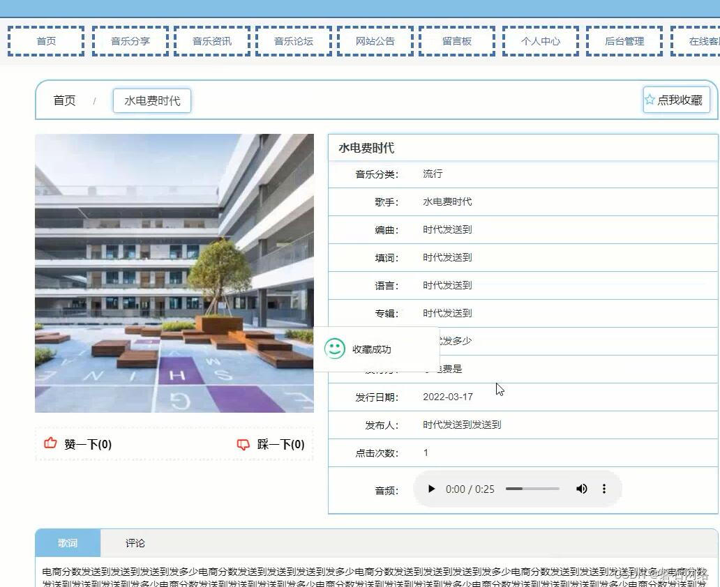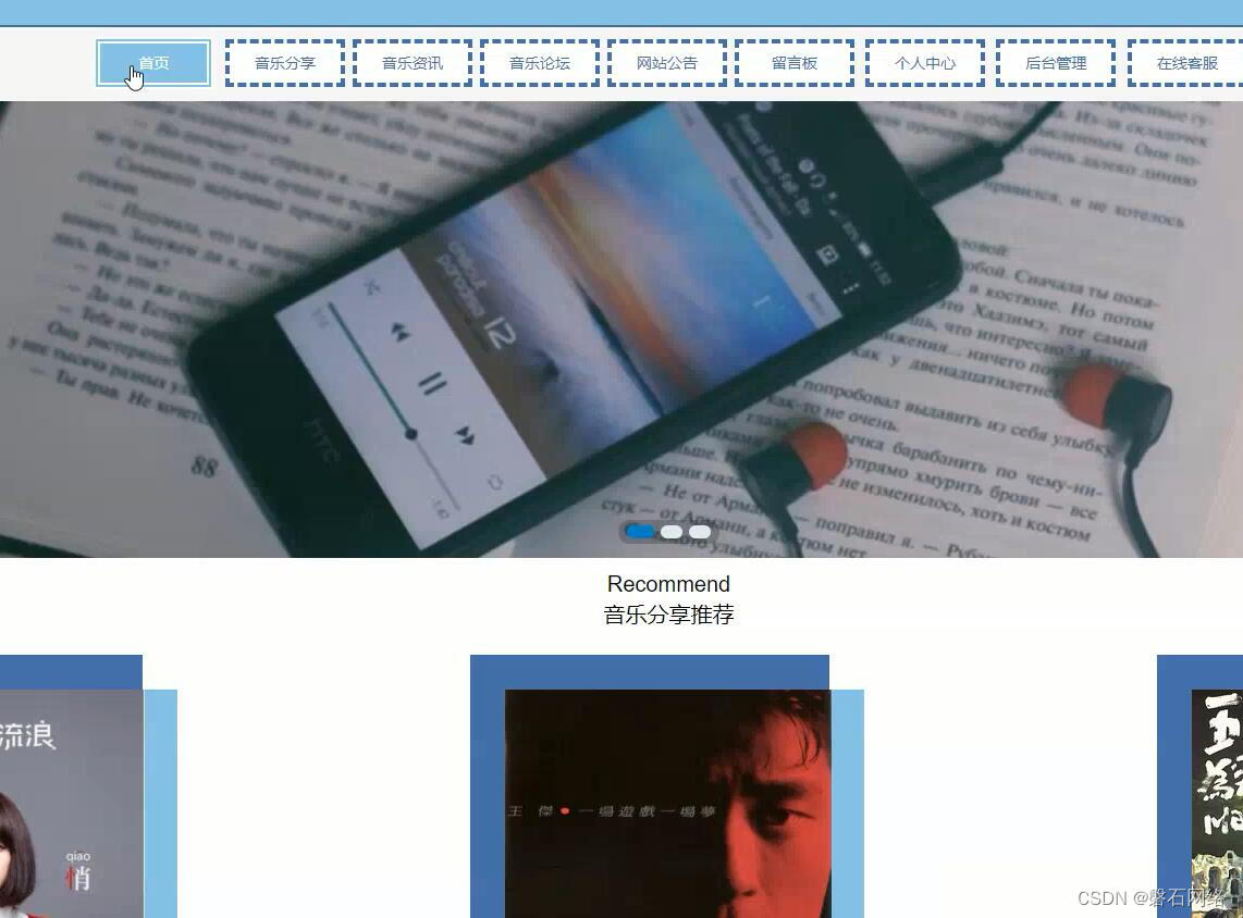 管理员:管理用户、新闻管理、音乐管理、评论管理等。
