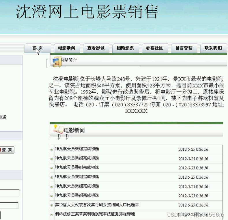 国内娱乐行业特别是电影行业也发展迅猛,电影票房屡创新高,为了能够使大众更为便捷的购买到电影票,使影迷购票能够有更多可选择的方式,网上订票方式应运而生,一个完善的网上电影票销售系统系统已经成为各个电影院的新的追求目标。
