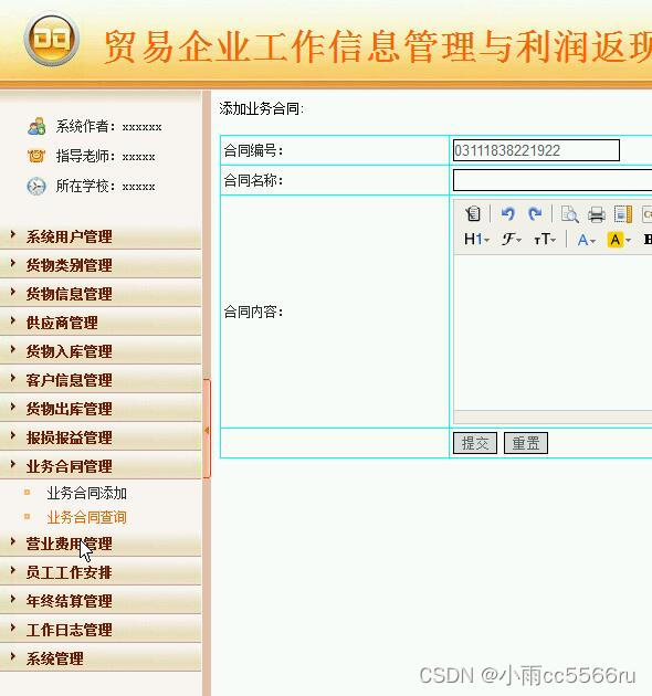 。此次系统设计主要包括几大功能模块,这几大功能模块将企业货物管理涉及的各方面内容都考虑进去。这几大功能模块分别是系统用户管理、货物类别管理、货物信息管理、供应商管理、货物入库管理、客户信息管理、货物出库管理、报损报溢管理、业务合同管理、营业费用管理、员工工作管理、年终结算管理、工作日志管理、系统管理模块。最后,经过系统需求分析和系统设计方式进行验证,结果显示,证明本设计有实用价值。从而从软件设计的角度对研究的理论,基础、系统整体布局及系统等具体设计进行了详细研究。
