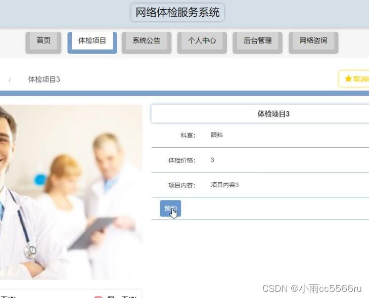 本系统结合计算机系统的结构、概念、模型、原理、方法,在计算机各种优势的情况下,采用 Vue框架以及MYSQL数据库设计并实现的。本网络体检服务系统主要包括个人中心、科室管理、体检项目管理、体检预约管理、取消预约管理、退款管理、体检报告管理等多个模块。它帮助网络体检服务实现了信息化、网络化,通过测试,实现了系统设计目标,相比传统的管理模式,本系统合理的利用了网络体检服务数据资源,有效的减少了网络体检服务的经济投入,大大提高了网络体检服务的效率。