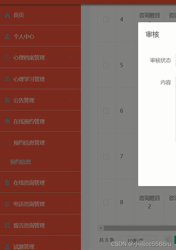 项目中登录模块用到token大学生心理健康管理系统,主要的模块包括首页、个人中心、学生管理、咨询师管理、心理档案管理、心理学习管理、公告管理、试题管理、心理论坛、试卷管理、系统管理等功能。系统中管理员主要是为了安全有效地存储和管理各类信息,还可以对系统进行管理与更新维护等操作,并且对后台有相应的操作权限。
