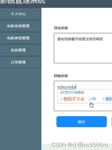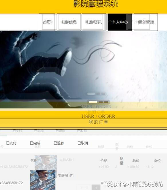 主要对个人中心,电影信息管理,电影类型管理,系统管理,订单管理的实现。