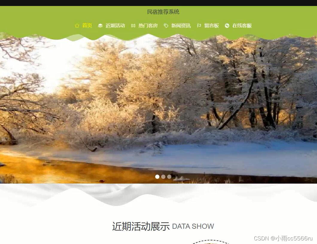 该民宿推荐系统应能够完成民宿推荐信息发布的需求,程序安全,操作应简单易行,通过简洁美观的前端页面引导即可完成操作。从多角度多方面思考理解大众用户的功能需求,思考系统应该具备的核心功能模块,并完成相应开发。民宿推荐系统应使用便捷,通过简单的日常浏览器即可使用该系统,方便管理者随时根据事件的发生快速更新主页,也方便浏览者随时随地查看。
