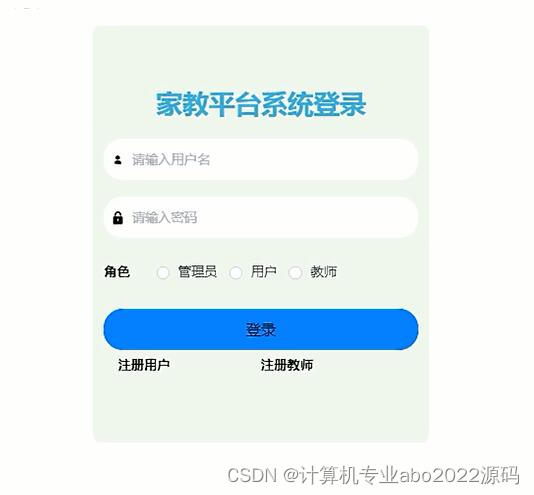 本源码有管理员、用户、教师三个角色,jdk版本:1.8 及以上